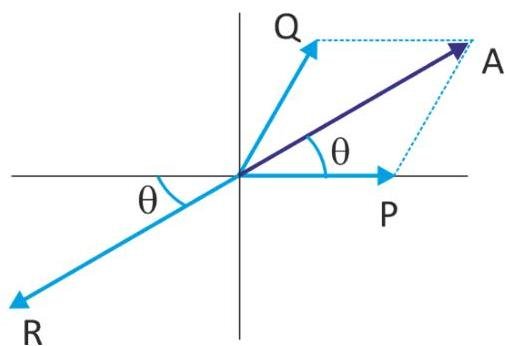 Let be the angle made by the resultant (vector A) of P and Q with P.