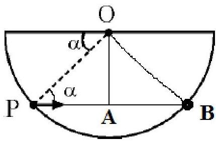 a particle of mass m is initially situated st the point p inside a hemispherical surface of radius r . A horizontal acceleration of magnitude a0 is suddenly produced on the particle in the horizontal direction. if gravitational acceleration is neglected, the time taken by particle to touch the sphere again is: