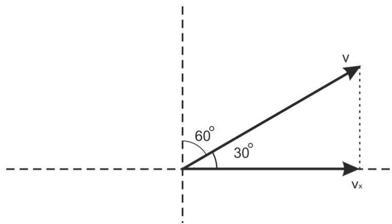 An object travels with velocity v=4.0 meters/second and it makes an angle of 60.0∘ with the positive direction of the y-axis. Calculate the possible values of vx