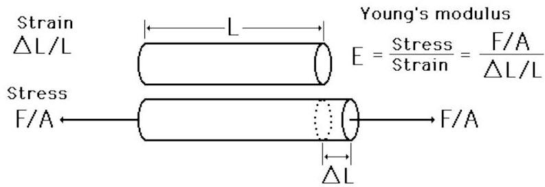 For the description of the elastic properties of linear objects like wires, rods, columns which are either stretched or compressed, a convenient parameter is the ratio of the stress to the strain, a parameter called the Young's modulus of the material. Young's modulus can be used to predict the elongation or compression of an object as long as the stress is less than the yield strength of the material.