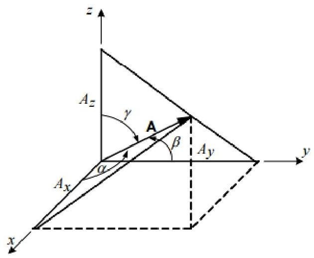 The cosines of the angles α,β , and γ in Fig. 1 are called the direction cosines and are designated by l,m , and n , respectively. Thus, in terms of A,Ax,Ay , and Az