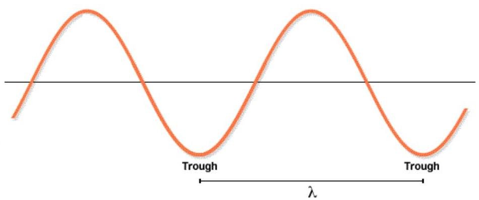 The wavelength of the wave is the distance between adjacent troughs: