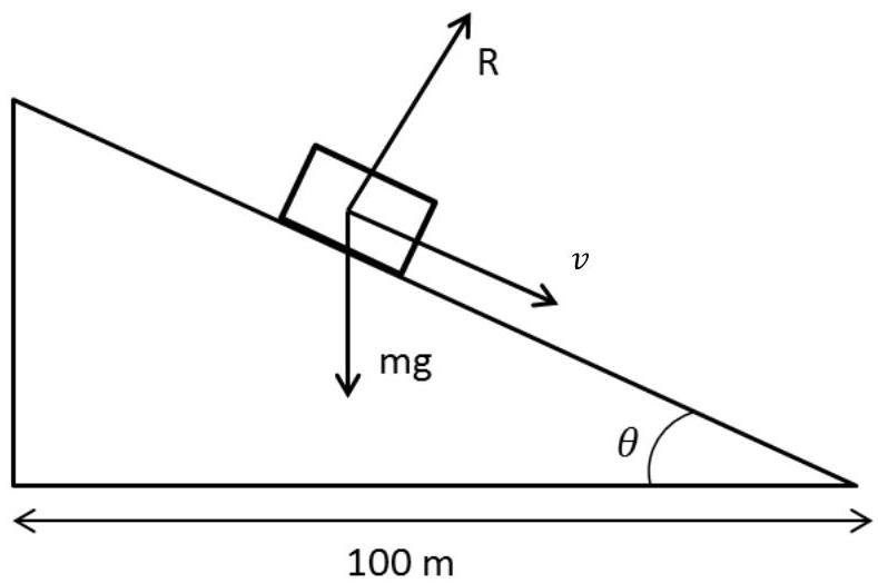 A racing car of mass moves around a banked track at a constant speed of 30ms. Assuming the total reaction at the wheels is normal to the track and the horizontal radius is . Calculate the angle of inclination of the track to the horizontal.
