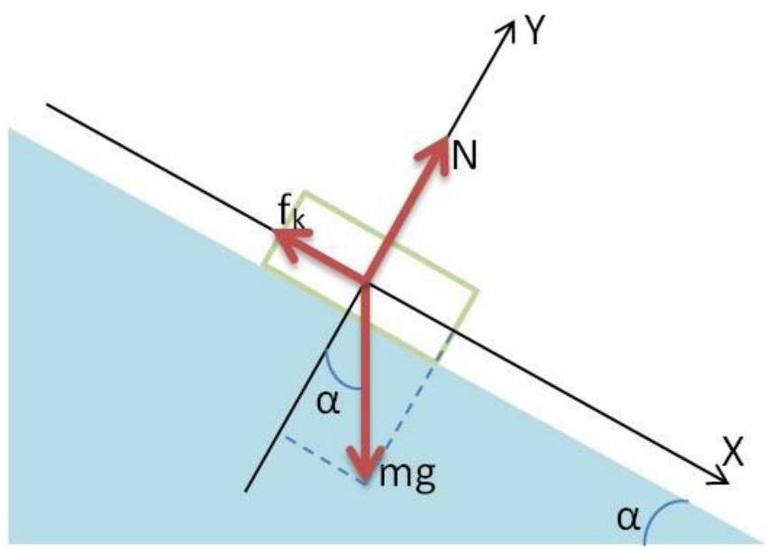 m is the mass of box; g is the gravity acceleration; N is reaction force; fk=μN is friction force.