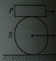 5-26 A plank P is placed on a solid cylinder S , which rolls on a horizontal surface. The two are of equal mass. There is no slipping at any of the surfaces in contact. The ratio of the kinetic energy of P to the kinetic energy of S is: