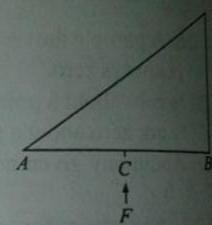 5-44 A triangle plate of uniform thickness and density is made to rotate about an axis perpendicular to the plane of the paper and (a) passing through and (b) passing through , by the application of the same force, at (midpoint of ) as shown in the figure-5.94. The angular acceleration in both the cases are and respectively, then: