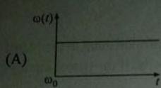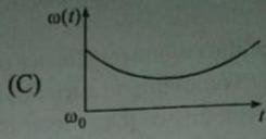 5-43 A circular platform is free to rotate in a horizontal plane about a vertical axis passing through a centre. A tortoise is sitting at the edge of the platform. Now, the platform is given an angular velocity of centre. When the tortoise moves along a chord of the platform with a constant velocity (w.r.t. the platform), the angular velocity of the platform will vary with time as: