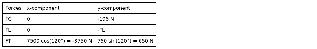 We will begin by computing the components of each of the forces: