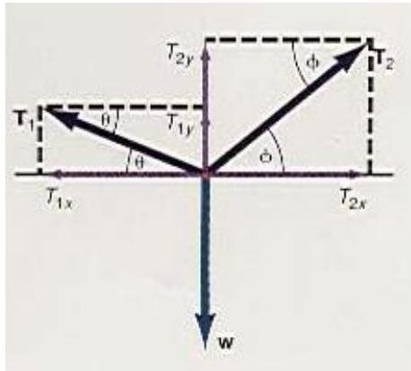 ∑Fy=0T1y+T2y−w=0