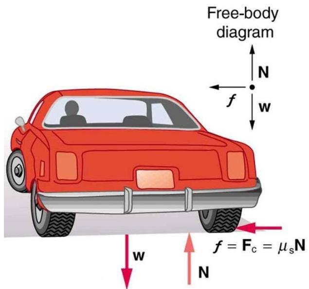 For this flat curve, the centripetal force is supplied by the friction force, ,