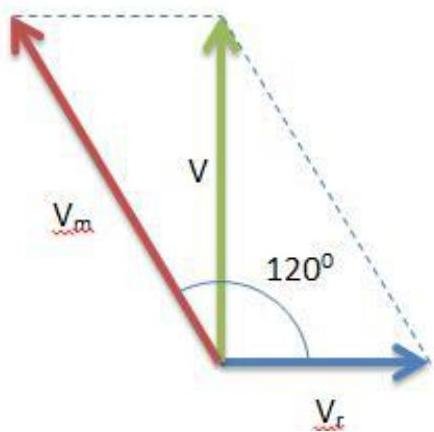 tan90=Vr+Vmcos120Vmsin120Vr=−Vmcos120=−(0.5)(−0.5)=0.25sm