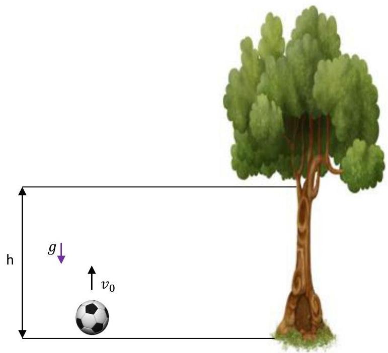 The movement of the ball consists of two parts. First, the ball moves upward until its speed reaches zero then moves down. The ball moves with an initial velocity v0=14.3m/s and constant acceleration g=9.8m/s2 downwards. Hence the height of the ball is described by the equation