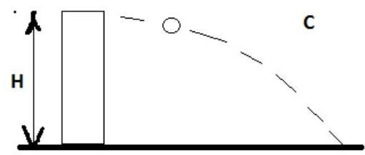Let's answer on this question using the figure above. It is shown all 3 cases. When a boy throws a ball in upward direction (it takes time , see fig.A), time , because the ball moves additional way in compare to case B. In the case C, when a ball was thrown in horizontal direction, there is no additional force in ground direction (besides the gravity force), hence time . Using the law of conservation energy for case B we can write: .