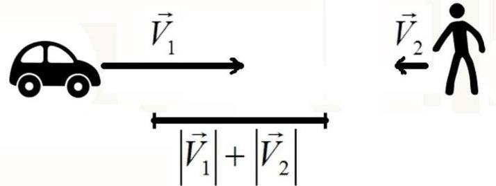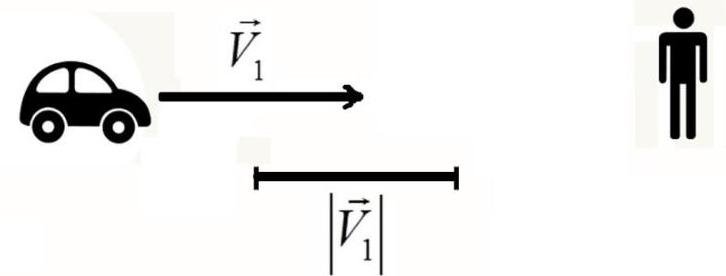 Using illustrations, explain why a car moves faster to a pedestrian moving in opposite direction than to a bystander