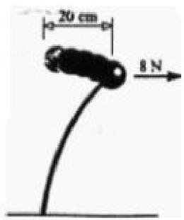 12 A long light steel strip is clamp at the lower end and a 2.0-kg mass is fastened to the top end as shown in the figure. A horizontal force of 8.0 N is required to displace the mass to 20 cm one side. Assuming that the system undergoes simple harmonic motion when released, calculate the period of oscillation of the mass.