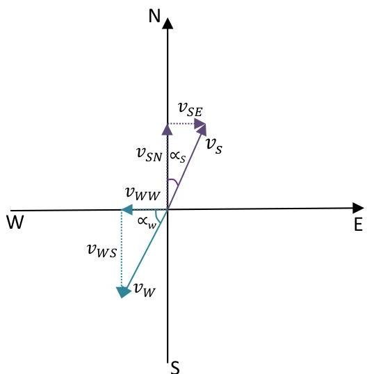 Therefore the components of the velocity sailing boats in East or North direction (relative to the Earth) is equal to