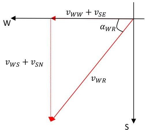 and the components of the wind speed in the West and South (relative to the Earth) are equal