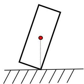 The center of mass is at a height of 0.4 m and a distance of 0.1 m from the edges. To turn the block over the edge, it is necessary to turn the block as shown in the figure (and then the slightest push, and he falls)