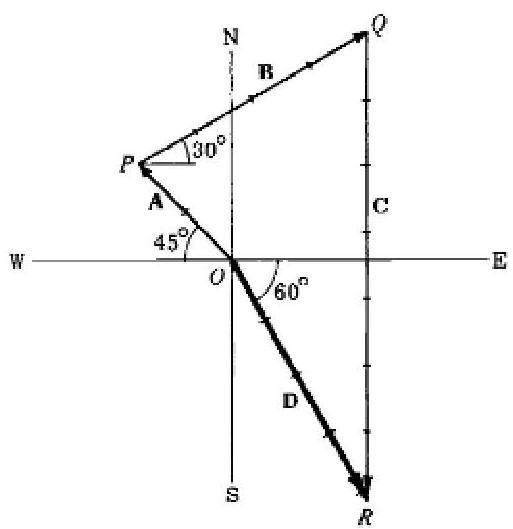 2. find the sum or resultant of the following displacements: A, 10 ft northwest, B, 20 ft 30 degrees north of east; C, 35 ft due south.