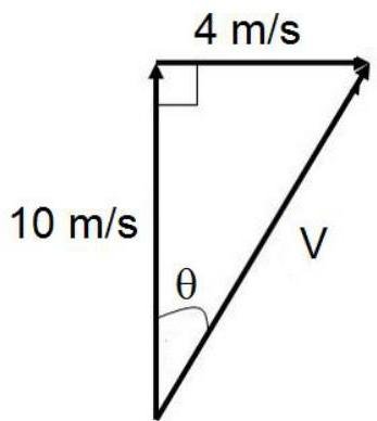 A bird is flying at 10ms−110\mathrm{ms}^{-1}10ms−1 forwards. At the same time a side wind blows it at 4ms−14\mathrm{ms}^{-1}4ms−1 to the right. Calculate the resultant velocity of the bird.