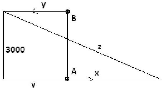 2. A man starts walking eastward at 5ft/sec from a point A. Ten minutes later a second man starts walking west at the rate of 5ft/sec from a point B, 3000ft north of A. How fast are they separating 10 minutes after the second man starts?