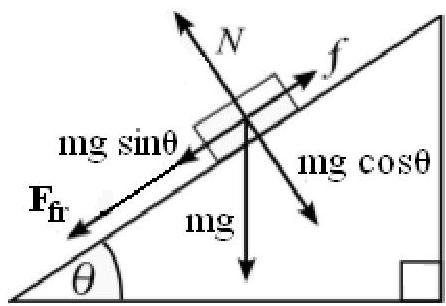 The balance of forces acting on the body is something inclined plane in the illustration. The force of gravity is directed vertically downward, can be decomposed into two components: a component parallel to the inclined plane, and a component perpendicular to the inclined plane. When moving up the body, even if this movement is uniform, the movement also prevents friction.