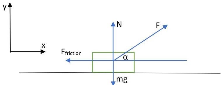 As Ffr=μN : ma=F(cosα+μsinα)−μmg ; aa=mF(cosα+μsinα)−μmg .