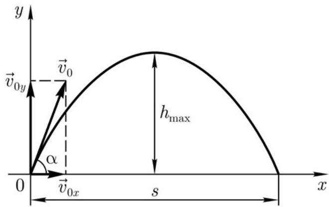The initial horizontal velocity is v0x=v0cosα and the initial vertical velocity is v0y=v0sinα. So