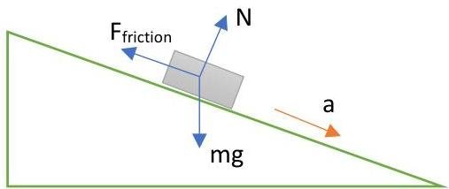ma=mg∗sin(30∘)−Ffriction0=N−mgcos(30∘)
