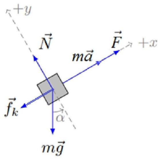 A crate of mass 30.0kg is pulled by a force of 180N up an inclined plane which makes an angle of 30∘ with the horizon. The coefficient of kinetic friction between the plane and the crate is μk=0.225 . If the crates starts from rest, calculate its speed after it has been pulled 15.0m . Draw the free body diagram.