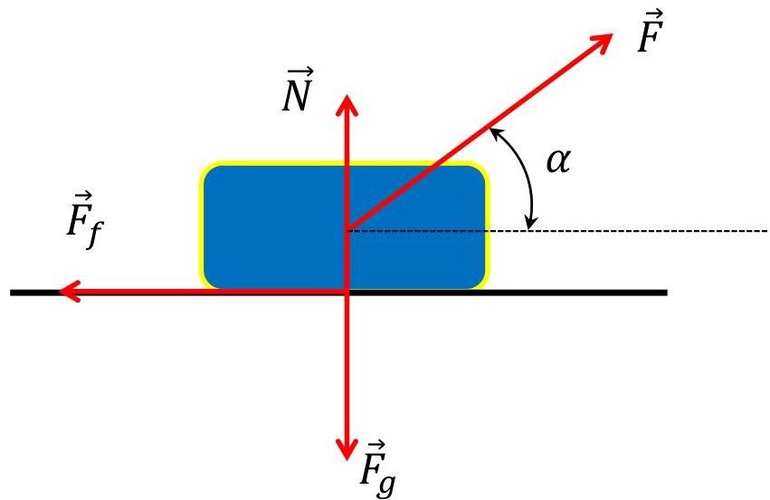 Question. Crate is moved across the floor by pulling a rope tied to it. The force on the crate is of magnitude 450N and is directed at an angle of 60∘ to the horizontal. The force of friction on the crate is 125N . The mass of the crate is 300kg . Draw the free body diagram for the system and calculate the acceleration of the crate. Calculate the work done by each of the forces in displacing the crate by 5.0m . Which of these forces is a "no-work" force?