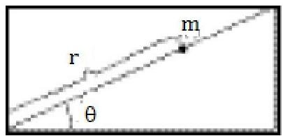 A Particle of mass m rests on a plane with no friction. The plane is raised to an inclination angle θ with a constant rate α(θ(t=0)=0) , causing the particle to slide down the plane. Determine the motion of the particle.
