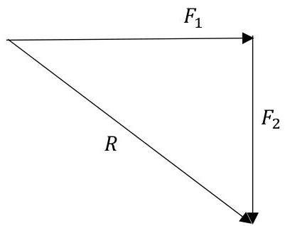 **Solution.** According to the condition of the problem, we have two forces and the forces act at right angles to each other. Let's draw a schematic drawing.