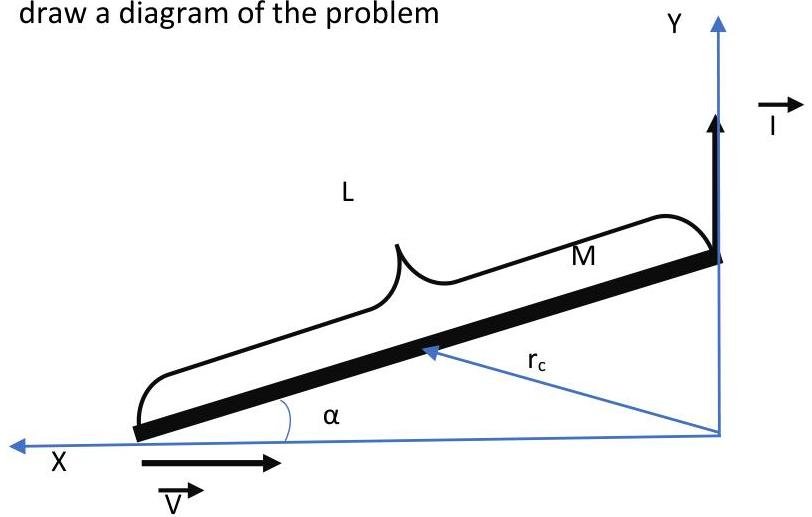 A uniform rod of mass M and length L is lying on a horizontal frictionless surface if a horizontal impulse I perpendicular to length of the road is applied at one end of the road the other end begins to move with speed V then find the magnitude of the impulse