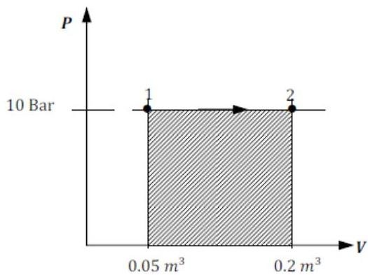 W=s h a d e d a r e a=∫V1V2pdV=p(V2−V1)=1000kPa⋅(0.2−0.05)m3=150kJ.