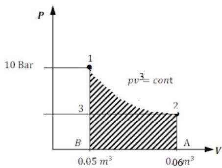 Where p2=p1(V2V1)3=10(0.060.05)3=5.787bar.