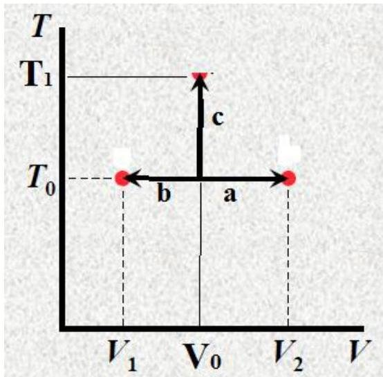 2) On a graph of volume versus temperature draw and label lines indicating the following processes, each proceeding from the same initial state T0, V0: