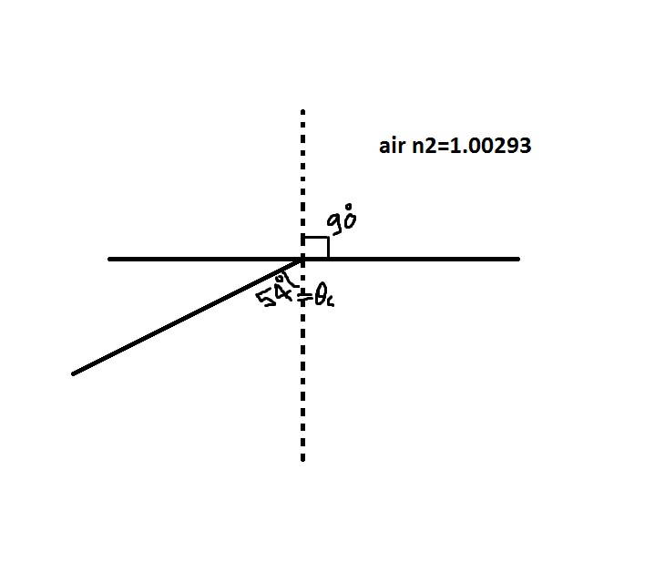 Suppose you are using total internal reflection to make an efficient corner reflector. If there is air outside and the incident angle is 54°, what must be the minimum index of refraction of the material from which the reflector is made?