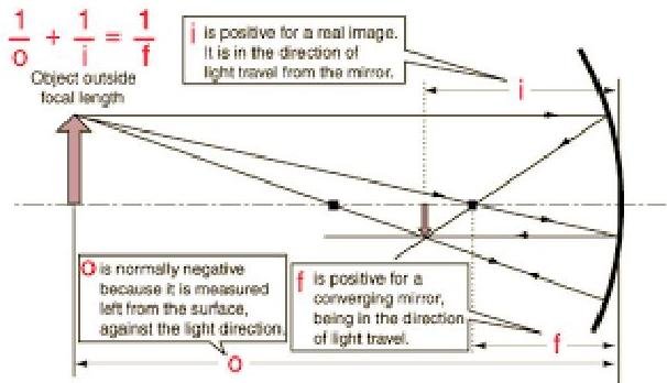 Since the radius is (which is the distance from the mirror to the center), and since the focal point is half ways in between and negative for a convex mirror, :