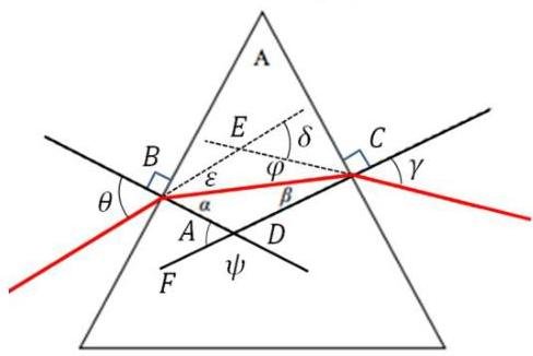 sinγ=n⋅sin(A−arcsin(nsinθ)).