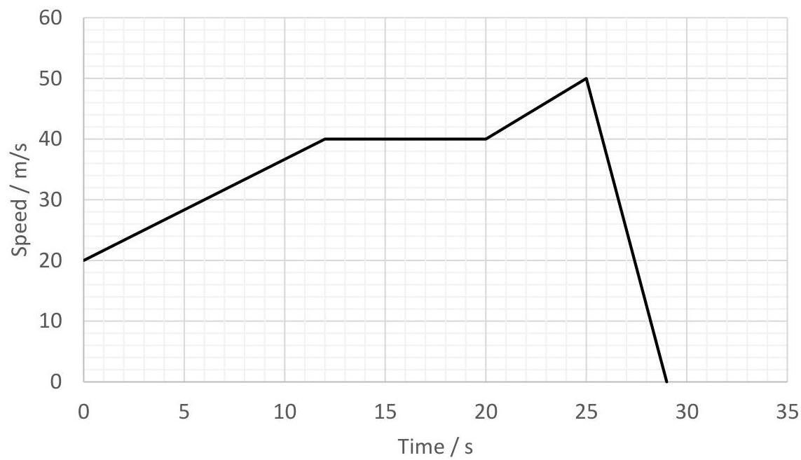 A car starts with a velocity of 20mls and attained a velocity of 40mls in 12secs. If it maintained this velocity for another 8 seconds after it increased its velocity to 50 mls in a further 5 seconds, After which it is uniformly retarded in another 4 seconds. Using a velocity-time graph calculate the total distance covered by the air