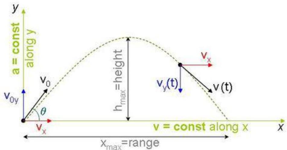 Projectile motion is a form of motion in which an object or particle (called a projectile) is thrown near the earth's surface, and it moves along a curved path under the action of gravity only.