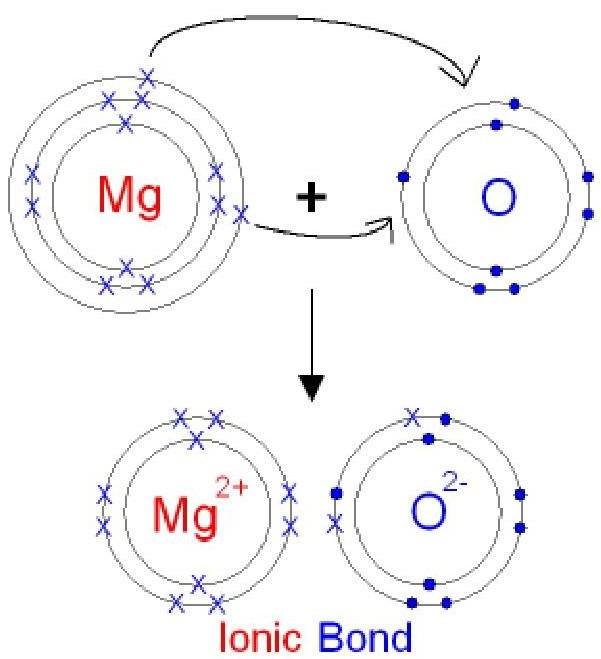 Explain with a diagram what type of a bond is formed between Magnesium and Oxygen.