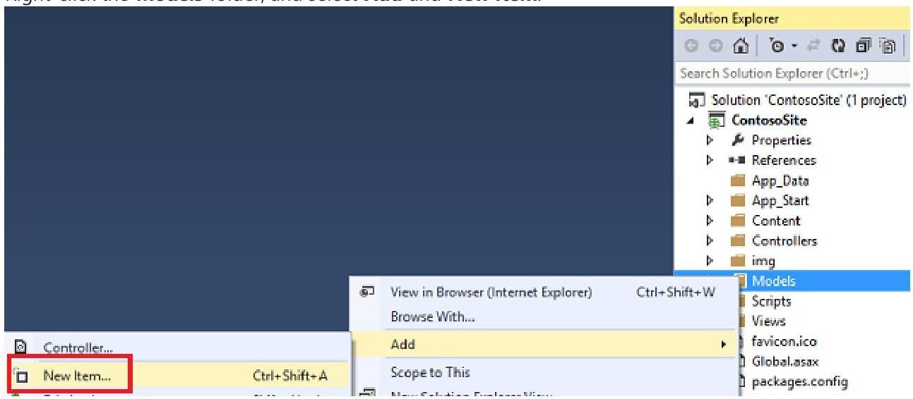 Right-click the Models folder, and select Add and New Item.