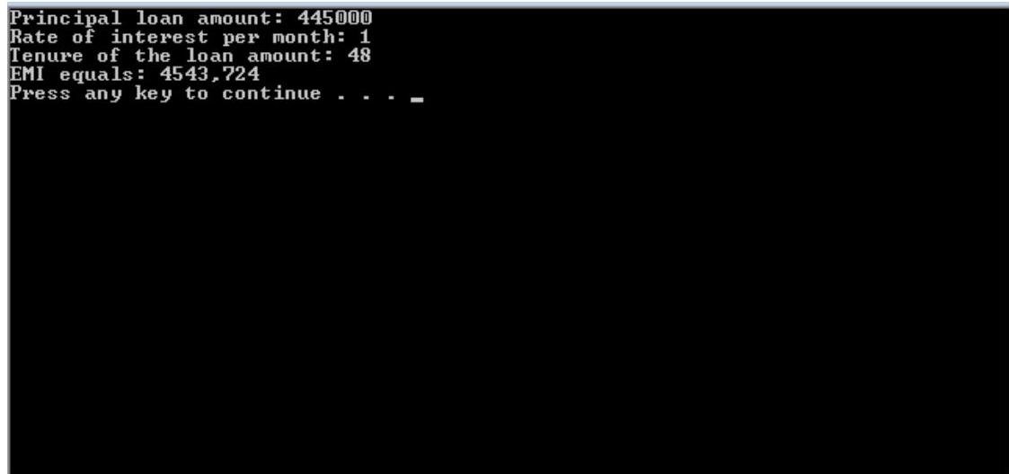 Console.WriteLine(String.Format("EMI equals: {0:F3}", EMI));