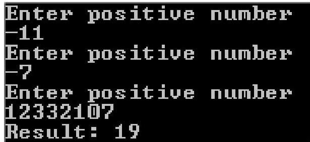 Console.WriteLine("Enter positive number");