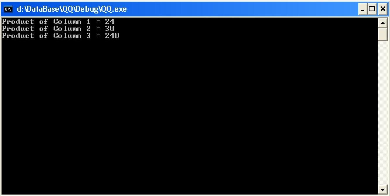 cout << "Product of Column " << j + 1 << " = " << product << endl;