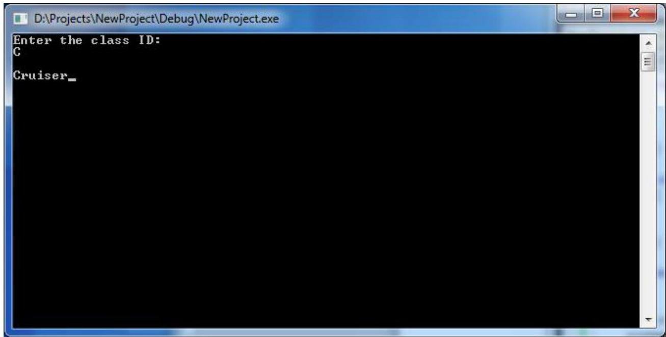 5. Write a program that determines the class of the Ship depending on its class ID (Identifier). Here are the criteria. The class ID serves as the input data and the ship class as the output information.