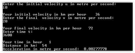 cout<<"Acceleration in metre per second: "<<a<<endl;