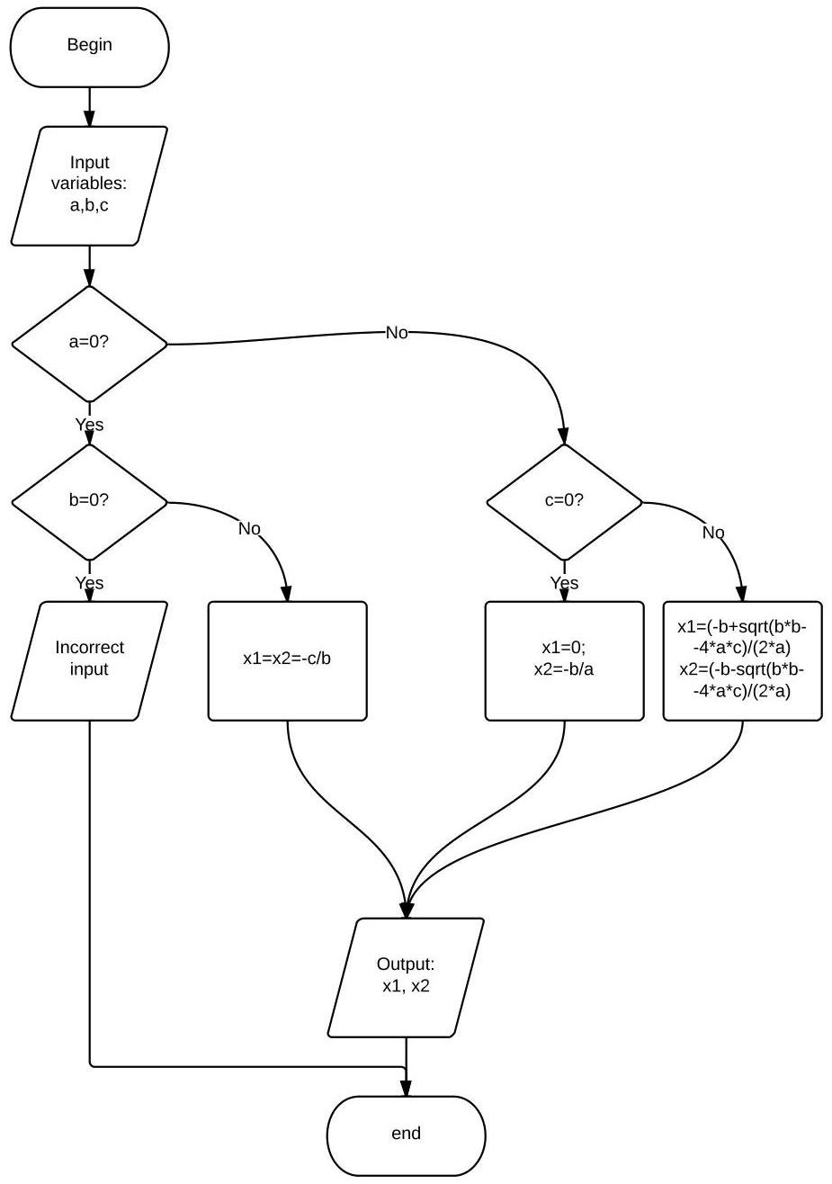 1) design a flow chart that compute the root of a quadratic equation ax square+bx+c=0